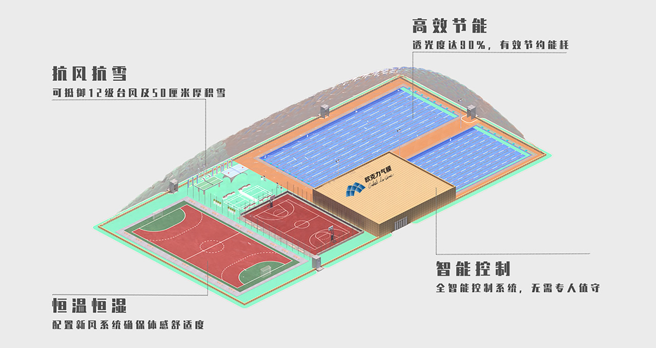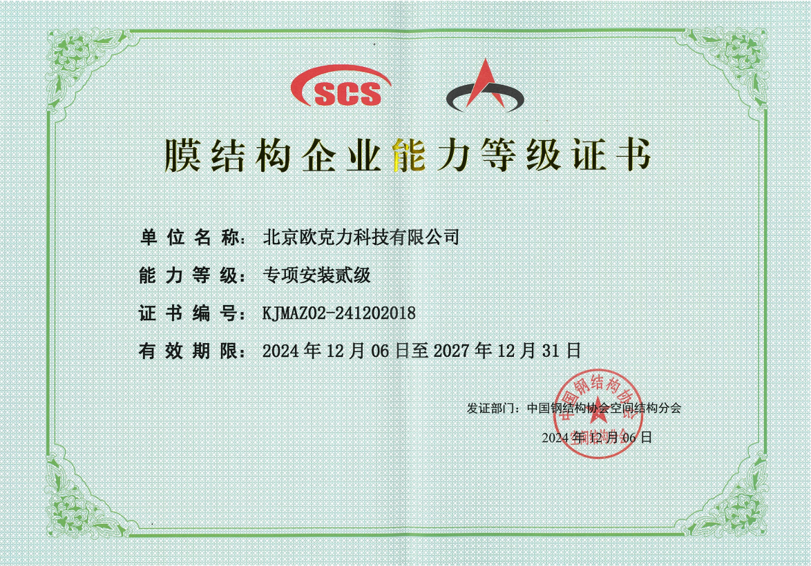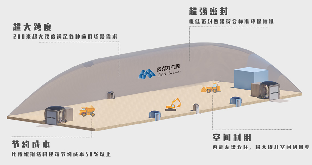 北京歐克力科技有限公司,成立于2009年,北京市通州區(qū)國(guó)家高新技術(shù)企業(yè),中國(guó)鋼結(jié)構(gòu)協(xié)會(huì)空間結(jié)構(gòu)分會(huì)會(huì)員單位,歐克力氣膜一直專(zhuān)注于研究、設(shè)計(jì)、生產(chǎn)新型氣承式膜結(jié)構(gòu)建筑及基坑氣膜租賃定制服務(wù)。深諳智能氣膜之道,高度整合行業(yè)資源,致力于為客戶(hù)提供優(yōu)質(zhì)高效的智能模塊化氣膜建筑,產(chǎn)品廣泛應(yīng)用于建筑工地、大型場(chǎng)館、體育.工業(yè)、物流、環(huán)保、旅游、考古、農(nóng)業(yè)、水利、生物化學(xué)石油化工、軍事等領(lǐng)域。 公司奉行技術(shù)驅(qū)動(dòng)的宗旨,持續(xù)加大科技研發(fā)投入。在氣膜建筑行業(yè)內(nèi)率先推出智能模塊化基坑氣膜租賃定制,為客戶(hù)降低初始投資成本,減少后期維護(hù)與存儲(chǔ)壓力,還開(kāi)發(fā)了基坑氣膜施工安全監(jiān)測(cè)與預(yù)警平臺(tái),基坑氣膜現(xiàn)場(chǎng)數(shù)據(jù)采集與分析平臺(tái),氣膜建筑設(shè)計(jì)與施工管理系統(tǒng)等多項(xiàng)發(fā)明專(zhuān)利。秉承"精于氣膜,模塊智造,服務(wù)至上"的經(jīng)營(yíng)理念,堅(jiān)持以一流的專(zhuān)業(yè)水準(zhǔn),一流的敬業(yè)精神,一流的服務(wù)意識(shí)為客戶(hù)提供優(yōu)化的氣膜建筑系統(tǒng)解決方案。